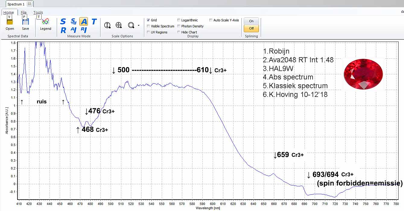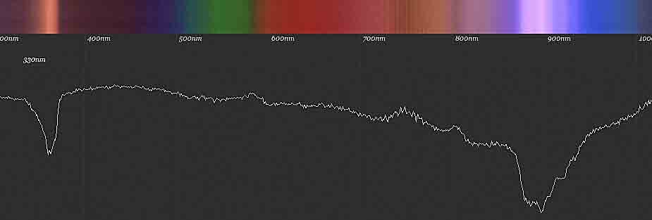 Bij een vis-nir spectroscoop wordt een edelsteen belicht met gewoon licht dwz. wit licht van een "gewone" gloeilamp (wolfraam = tungsten). Dit bronlicht is polychroom cq omvat alle spectrumkleuren (rood, oranje, geel, groen, blauw, indigo en violet, afgekort roggbiv). De gloeilamp maar ook de halogeenlamp zenden een min of meer gelijkmatige straling uit.