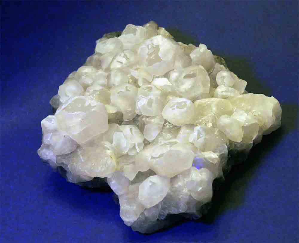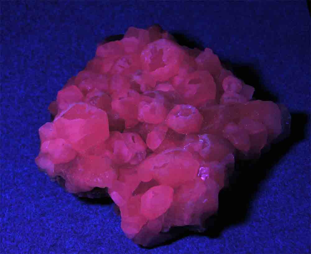 Fluorescerende mineralen lichten op in een donkere omgeving en belicht met bijvoorbeeld lang (366 nm) of kort (254 nm) uv-licht. In Belgie is de MKA en met name Axel Emmermann actief op fluorescentiegebied. Onderstaand voorbeeld is van hem "geleend" :