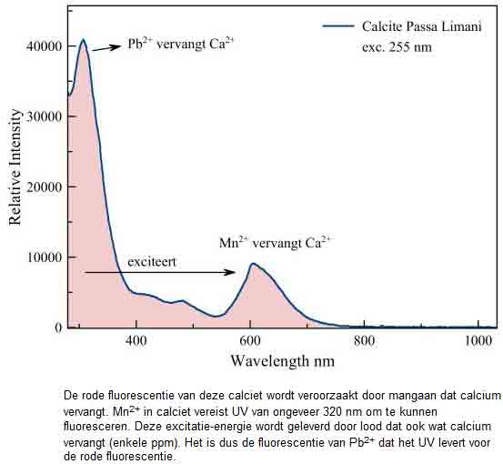 5.1 Calciet, wit en uv-licht en fluorescentiespectrum, Axel Emmermann